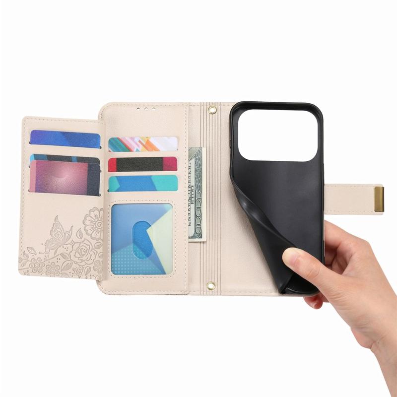 Las fundas de cartera se han vuelto cada vez más populares como alternativa ecológica a llevar tanto una cartera como una funda para el iPhone 17 Pro Max. El proceso de repujado floral no solo mejora el aspecto, sino que también refuerza la superficie de poliuretano, haciéndola más duradera frente a los arañazos.