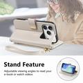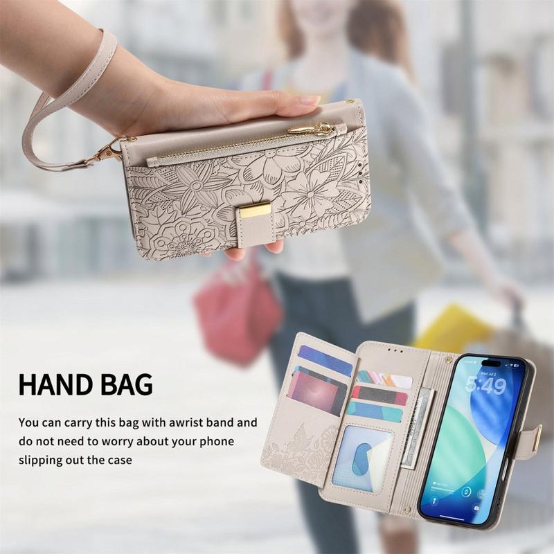 • Funda de cartera con estampado de flores y hojas, bolsillo con cremallera y correa para el iPhone 17 Pro Max