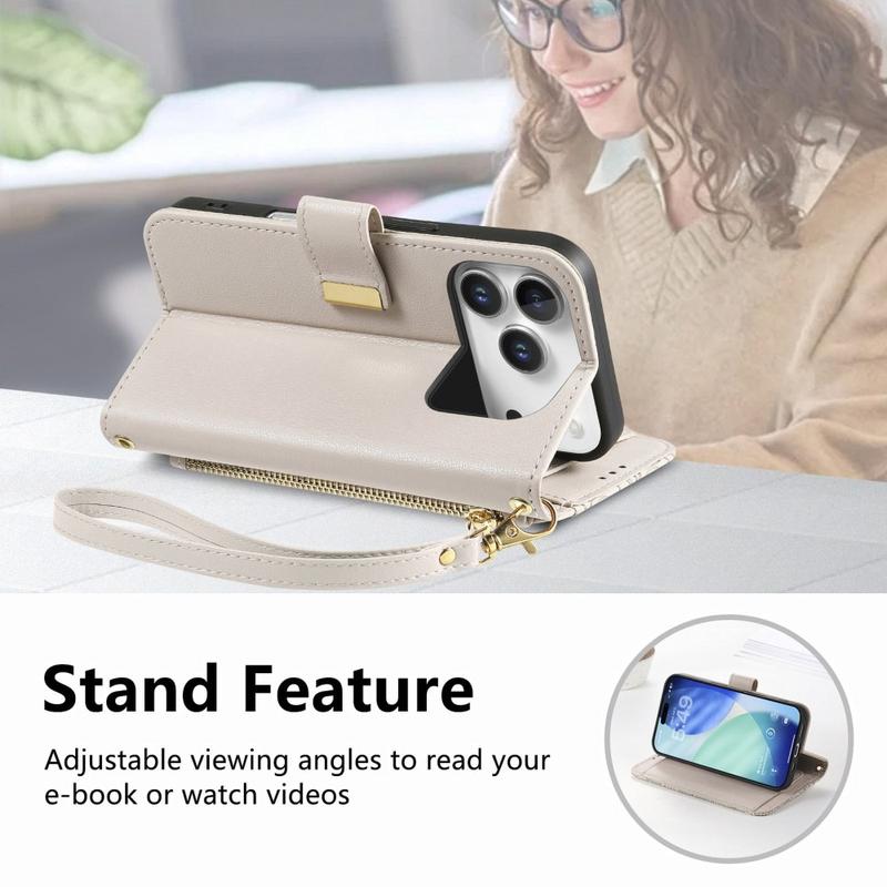 A diferencia de las fundas normales para iPhone 17 Pro Max, esta funda monedero todo en uno combina protección, organización y elegancia. El estampado floral le da un toque de estilo, mientras que el bolsillo con cremallera y la correa para la muñeca proporcionan una comodidad inigualable para la vida diaria y los viajes.