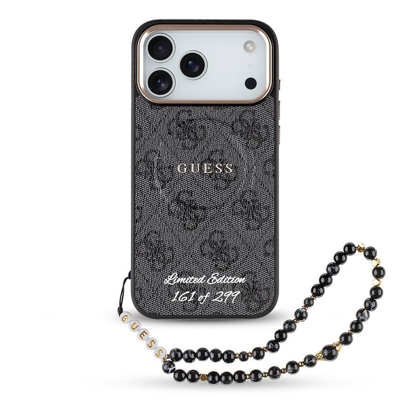 • Funda compatible Guess 4G Strap MagSafe para iPhone 17 Pro Max - Edición limitada (299 unidades) Funda trasera numerada con correa de muñeca de cuentas