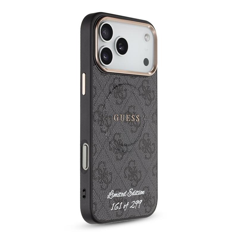 Haz que tu iPhone 17 Pro Max destaque con la funda Guess 4G MagSafe Strap Case - Limited Edition. Con el característico estampado 4G, el logotipo de Guess y una elegante correa de cuentas, esta funda combina moda y funcionalidad para el día a día. Sólo se han fabricado 299 unidades y cada funda está numerada individualmente en la parte posterior, lo que le confiere un auténtico atractivo de coleccionista. Fabricada en poliuretano (piel artificial) ligero y duradero, protege el iPhone 17 Pro Max del polvo y los arañazos y ofrece un agarre seguro y antideslizante. El ajuste preciso mantiene los botones y puertos totalmente accesibles, y la compatibilidad con MagSafe significa que puedes usar accesorios magnéticos y carga inalámbrica sin quitar la funda.