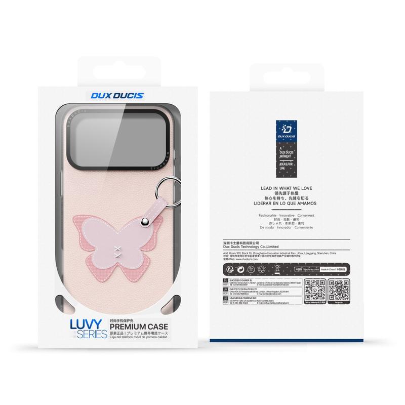 Funda iPhone 17 Pro Dux Ducis Luvy con Anillo para el Dedo/Correa para la Mano - Rosa Claro / Mariposa