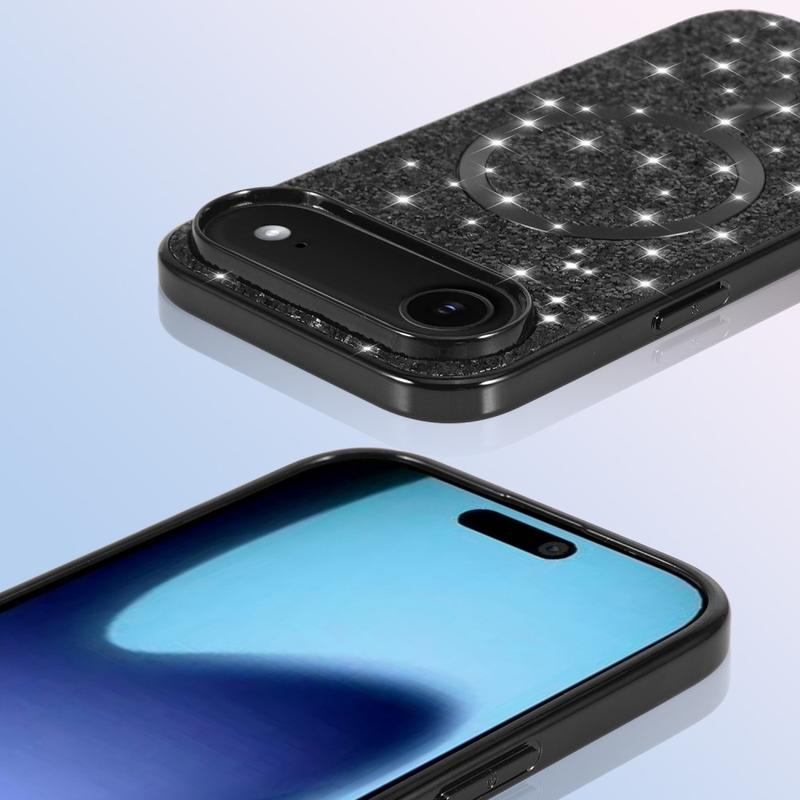 Dale a tu iPhone Air un toque deslumbrante con esta funda magnética con purpurina. Diseñada con brillantes lentejuelas, un elegante acabado galvanizado y una duradera construcción de doble material, ofrece estilo y protección. El anillo magnético incorporado garantiza una compatibilidad total con MagSafe, lo que facilita su uso con cargadores inalámbricos y soportes magnéticos sin quitar la funda.