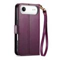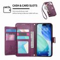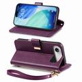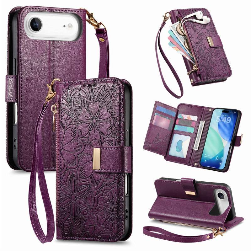 Funda iPhone Air con estampado de flores y hojas, bolsillo con cremallera y correa para la muñeca - Violeta