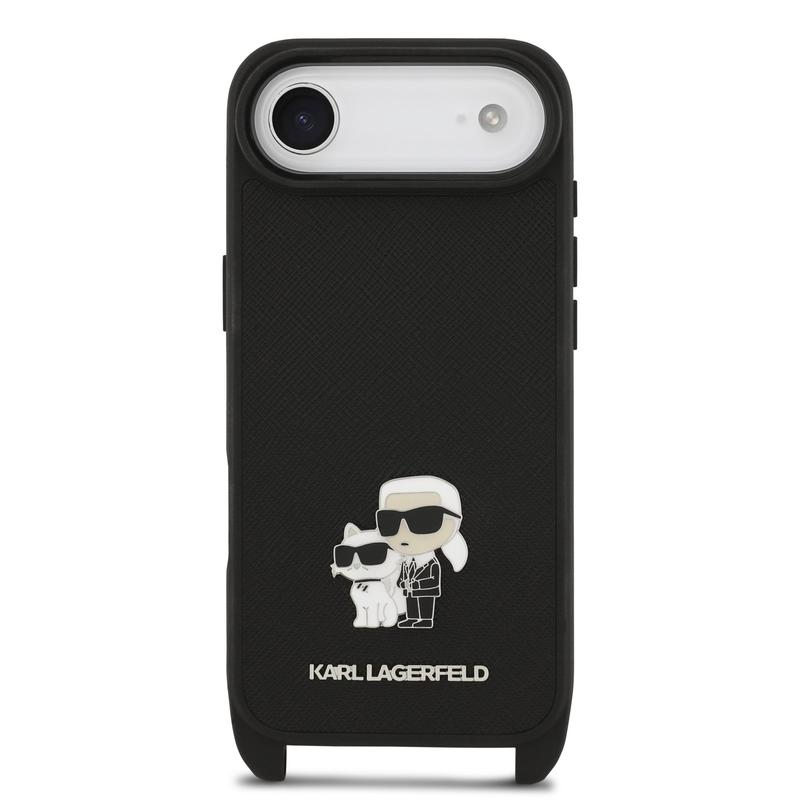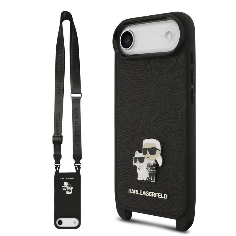 Funda iPhone Air Karl Lagerfeld Saffiano Crossbody Metal Karl & Choupette - Negro
