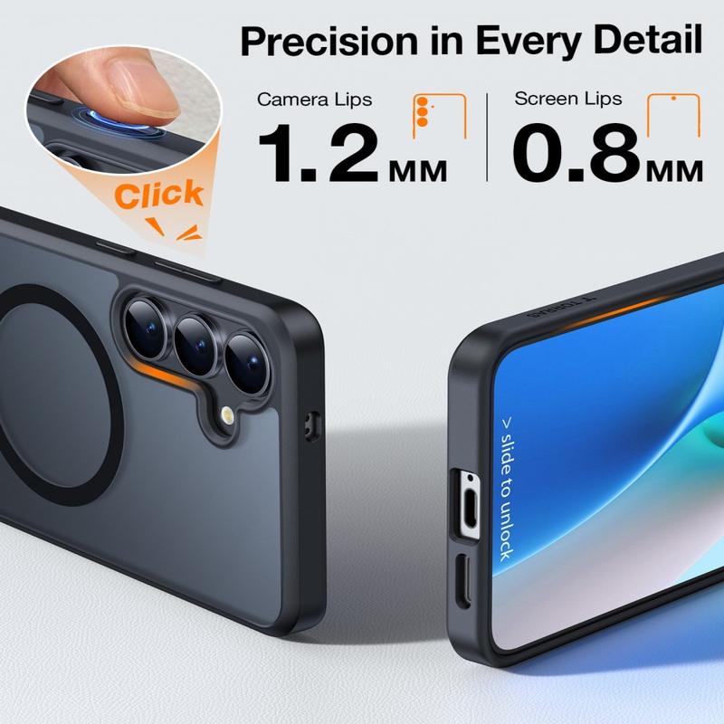 La funda magnética Torras Ostand L1 está fabricada con una combinación cuidadosamente equilibrada de TPU, PC y metal, que ofrece durabilidad sin comprometer el estilo. Esta construcción multimaterial protege su Samsung Galaxy S26+ del desgaste diario, manteniendo un aspecto elegante y moderno que se siente cómodo en la mano.
