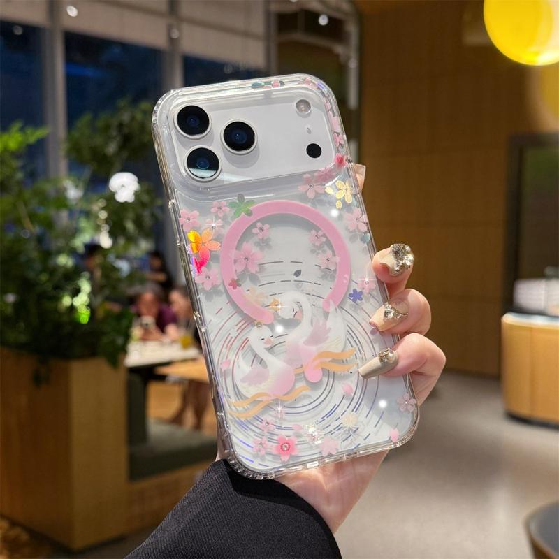 Funda magnética iPhone 17 Pro con diamantes de imitación incrustados - Cisnes
