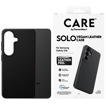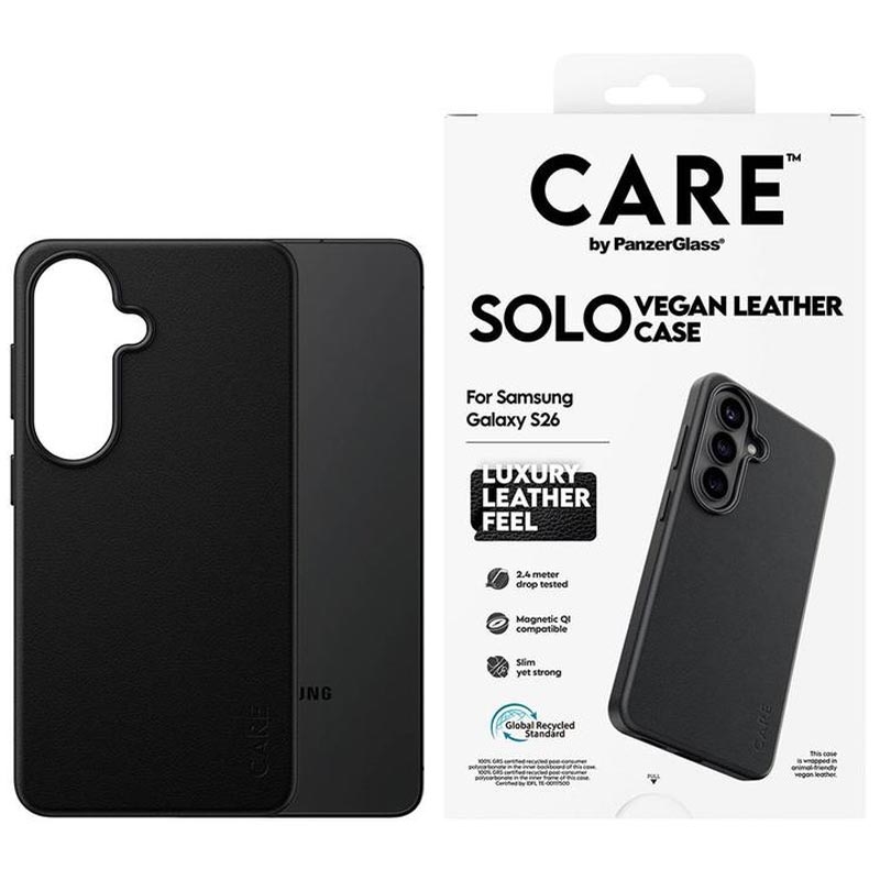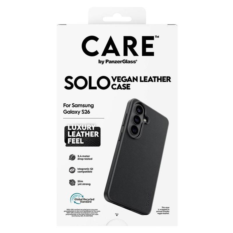• Funda magnética Care by PanzerGlass Solo para Samsung Galaxy S26: acabado en PU, probada contra caídas de 2,4 m, compatible con accesorios magnéticos y protección mejorada para la cámara