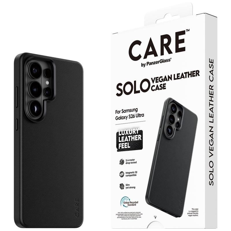 • Funda magnética Care by PanzerGlass Solo para Samsung Galaxy S26 Ultra: acabado en PU, probada contra caídas de 2,4 m, compatible con accesorios magnéticos y protección mejorada para la cámara