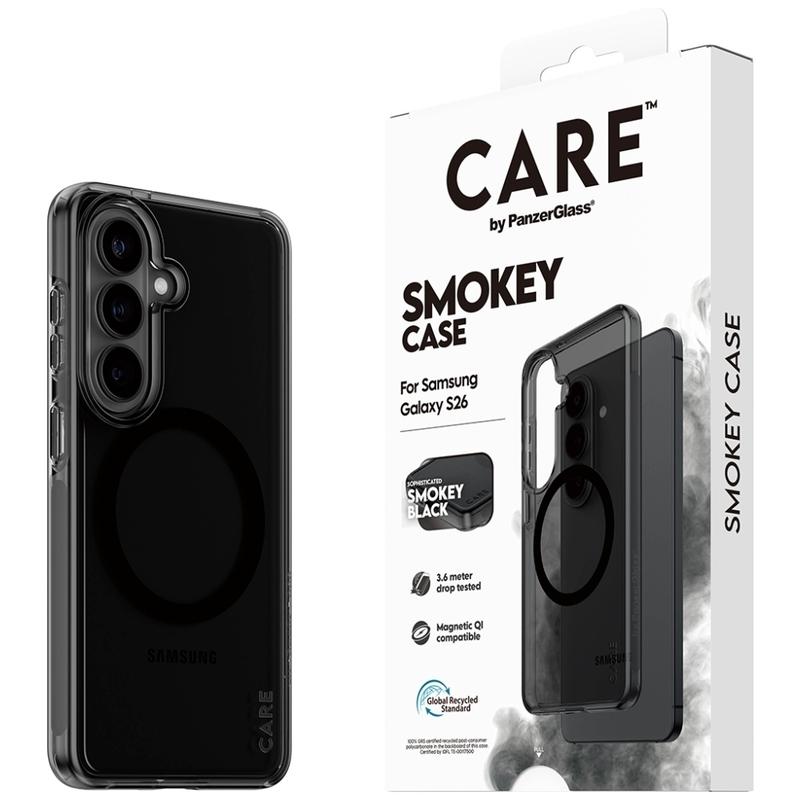 Funda magnética Care by PanzerGlass Urban Explorer Smokey para Samsung Galaxy S26: plástico 100 % reciclado, probada contra caídas de 3,6 m, garantía antidescoloramiento y protección mejorada para la cámara