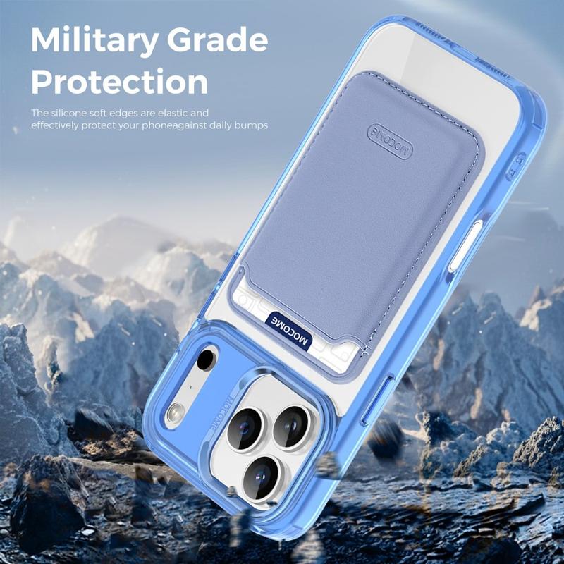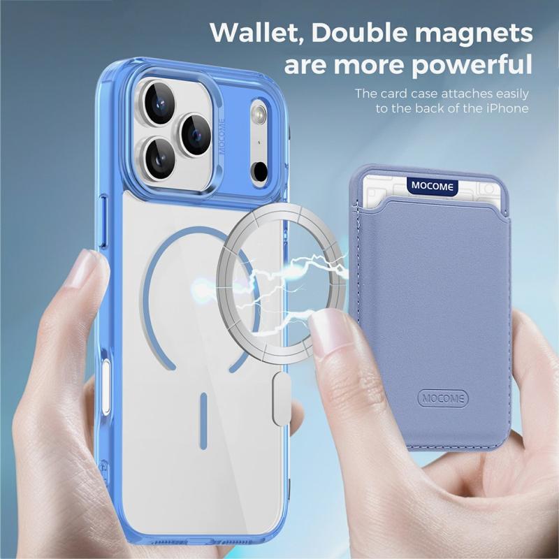 Protege tu dispositivo con estilo con la funda MagSafe para iPhone 17 Pro Max, diseñada para ofrecer durabilidad y comodidad. Fabricada con una estructura híbrida de TPU y PC, esta funda combina flexibilidad y resistencia para protegerlo de caídas, arañazos y el uso diario. El anillo magnético integrado la hace totalmente compatible con la carga MagSafe y los soportes magnéticos para coche, mientras que la bolsa extraíble de doble imán para tarjetas permite llevar 1-2 tarjetas sin añadir volumen. Un acabado cristalino mantiene el iPhone 17 Pro Max con un aspecto elegante y original, mientras que los bordes reforzados y los biseles elevados garantizan una protección total de la pantalla y la cámara.