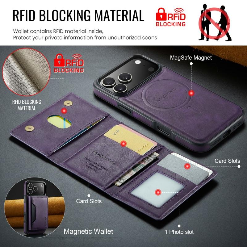 • Funda MagKing K2 Series para iPhone 17 Pro - Funda con soporte compatible con MagSafe y billetera RFID desmontable