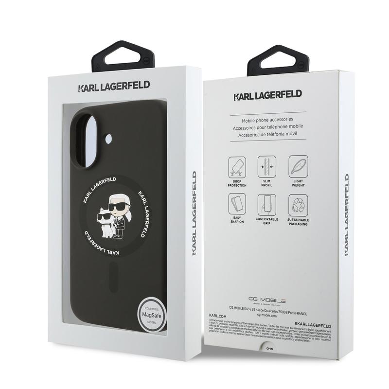 • Funda MagSafe de silicona líquida Karl Lagerfeld Karl and Choupette para iPhone 17