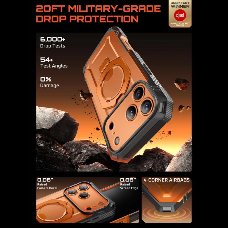 Combinando protección militar resistente, compatibilidad con MagSafe y un soporte integrado, esta funda es ideal para usuarios activos, viajeros y cualquiera que desee la máxima protección sin sacrificar el estilo o la comodidad.