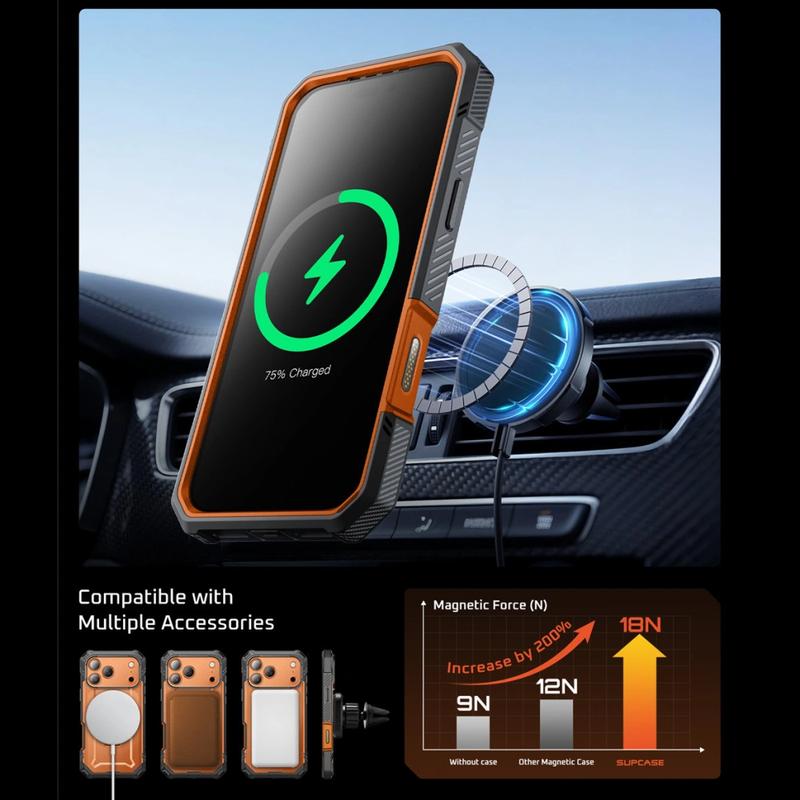 La SUPCASE Unicorn Beetle Grip Pro Mag para iPhone 17 Pro Max está diseñada para aquellos que exigen durabilidad y funcionalidad. Construido con TPU resistente a los impactos y esquinas reforzadas, cumple con el estándar MIL-STD 810G, protegiendo su dispositivo de caídas de hasta 15 pies mientras lo protege de arañazos y el desgaste diario.