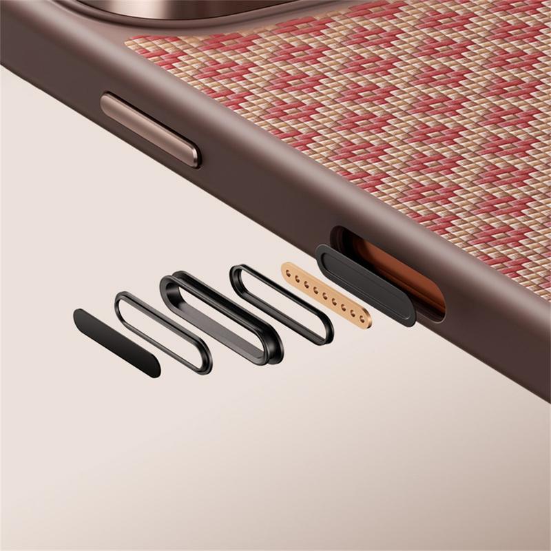 La placa posterior de fibra de aramida con tejido geométrico artístico ofrece una sensación táctil única y un aspecto sofisticado de alta tecnología. La superficie texturizada mejora el agarre y resalta la naturaleza premium del material, haciendo que la funda destaque a la vez que conserva un diseño minimalista.