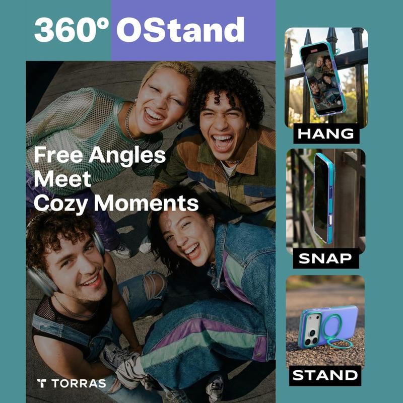 Funda MagSafe Torras O3 Hue para iPhone 17 Pro Max: funda protectora de PC/TPU con soporte magnético de 360°