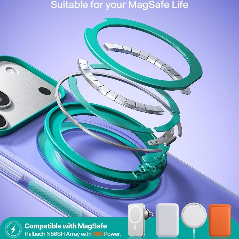 Una característica clave de esta funda es su gran compatibilidad magnética. Fabricada con una matriz de imanes Halbach N56SH y una fuerza de succión especificada de 18 N, está diseñada para una alineación segura con accesorios y cargadores magnéticos compatibles. El soporte magnético integrado de 360º añade una comodidad extra, permitiéndote colocar tu iPhone 17 Pro Max para verlo sin necesidad de usar las manos durante videollamadas, streaming, lectura o las tareas multitarea del día a día.