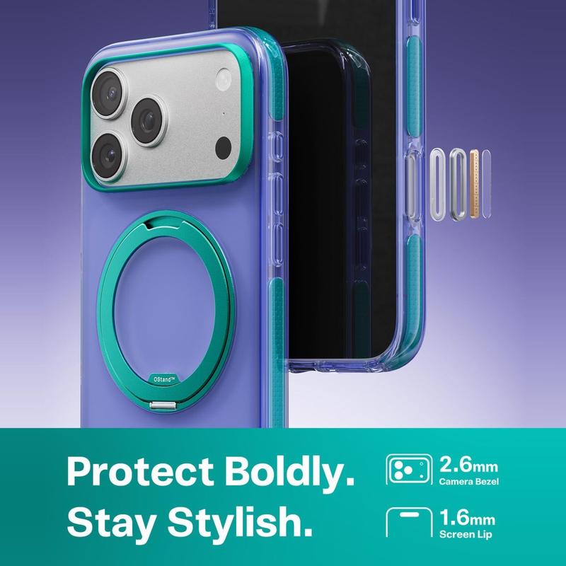 La funda Torras O3 Hue también cuenta con bordes protectores elevados para ayudar a reducir el contacto directo con superficies planas. El reborde de 2,5 mm para la cámara y los bordes de 1,5 mm para la pantalla proporcionan una separación adicional alrededor de las zonas más expuestas del iPhone 17 Pro Max. Con materiales reforzados que amortiguan los impactos, compatibilidad con MagSafe y una práctica función de soporte, esta funda es una excelente opción para los usuarios que buscan protección y comodidad en un mismo diseño.