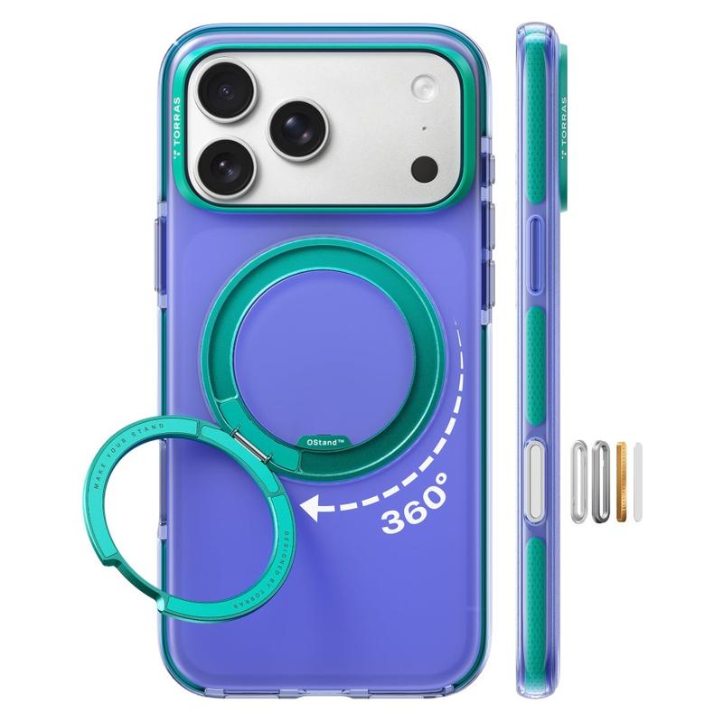 Funda MagSafe Torras O3 Hue para iPhone 17 Pro: funda protectora de PC/TPU con soporte magnético de 360°
