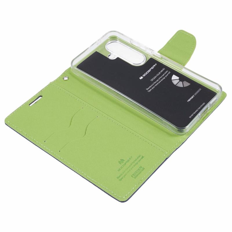 - La funda tipo cartera Mercury Goospery Fancy Diary está fabricada en poliuretano de alta calidad y reforzada con una cubierta de TPU
