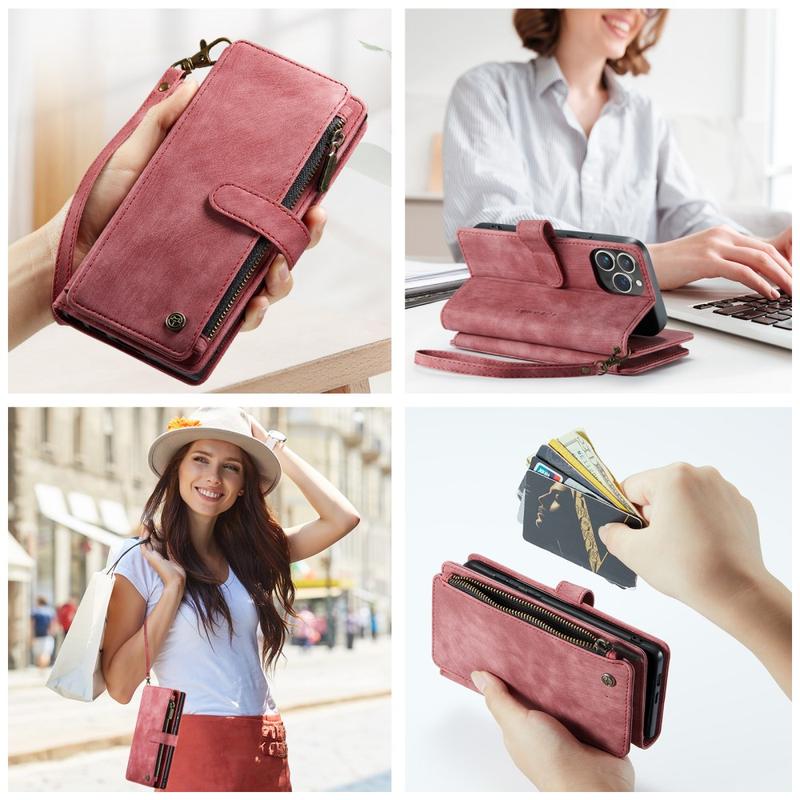 The Caseme C30 multifunctional wallet case for iPhone 16 Pro brings exceptional all-around protection and an exclusive, refined design. This elegant case is made of premium polyurethane, reinforced with a shock-resistant TPU inner cover that snuggles your iPhone 16 Pro perfectly. Meanwhile, the Caseme C30 wallet case is enhanced with numerous card slots, one large money compartment inside, and one outside zipper pocket, all protected by a secure magnetic closure.