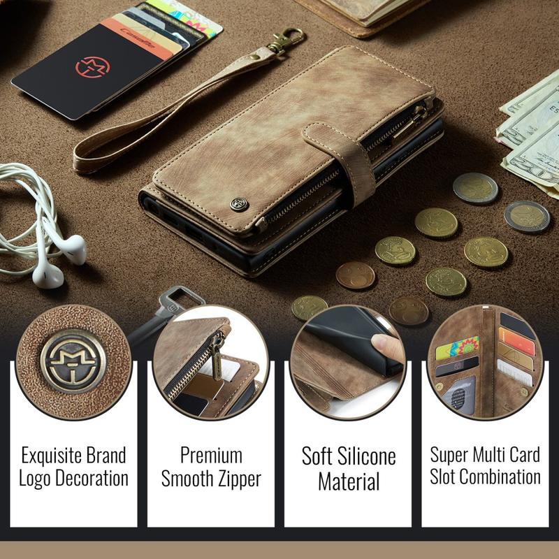 La funda billetera multifuncional Caseme C30 para iPhone 17 Pro ofrece una protección integral excepcional y un diseño exclusivo y refinado. Esta elegante funda está hecha de poliuretano de primera calidad, reforzado con una cubierta interior de TPU resistente a los golpes que se ajusta perfectamente a su iPhone 17 Pro. Mientras tanto, la funda billetera Caseme C30 está mejorada con numerosas ranuras para tarjetas, un gran compartimento para dinero en el interior y un bolsillo exterior con cremallera, todo protegido por un cierre magnético seguro.