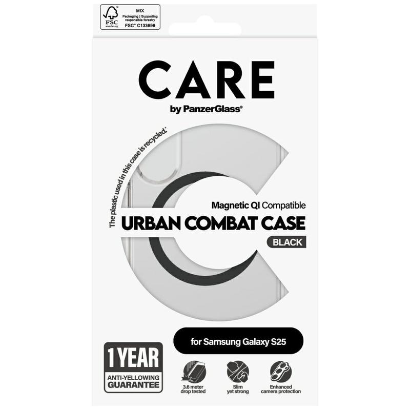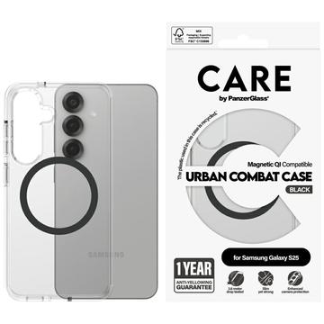 Funda PanzerGlass Care Urban Combat para Samsung Galaxy S25 - Compatible con MagSafe - Transparente / Negro