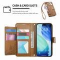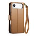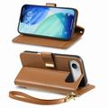 Funda para iPhone Air con estampado de flores y hojas, bolsillo con cremallera y correa para la muñeca - Marrón