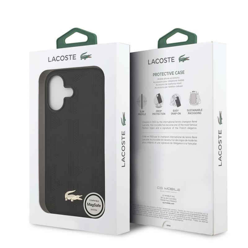 Funda para iPhone 17 Lacoste Monogramme Gold Logo - Compatible con MagSafe - Negro