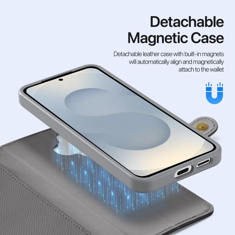 • Funda de piel Dux Ducis Lawa Wallet con tapa magnética extraíble para Samsung Galaxy S26+ - Compatible con MagSafe