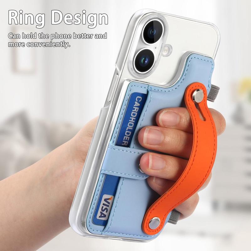 Funda de plástico CY1 para iPhone 16 - Ranura para tarjetas, muñequera, soporte - Azul cielo
