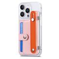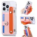 Funda de plástico CY1 para iPhone 16 Pro - Ranura para tarjetas, muñequera, soporte - Rosa