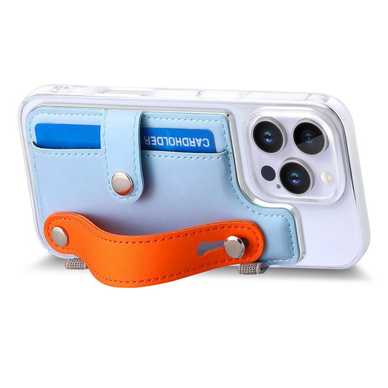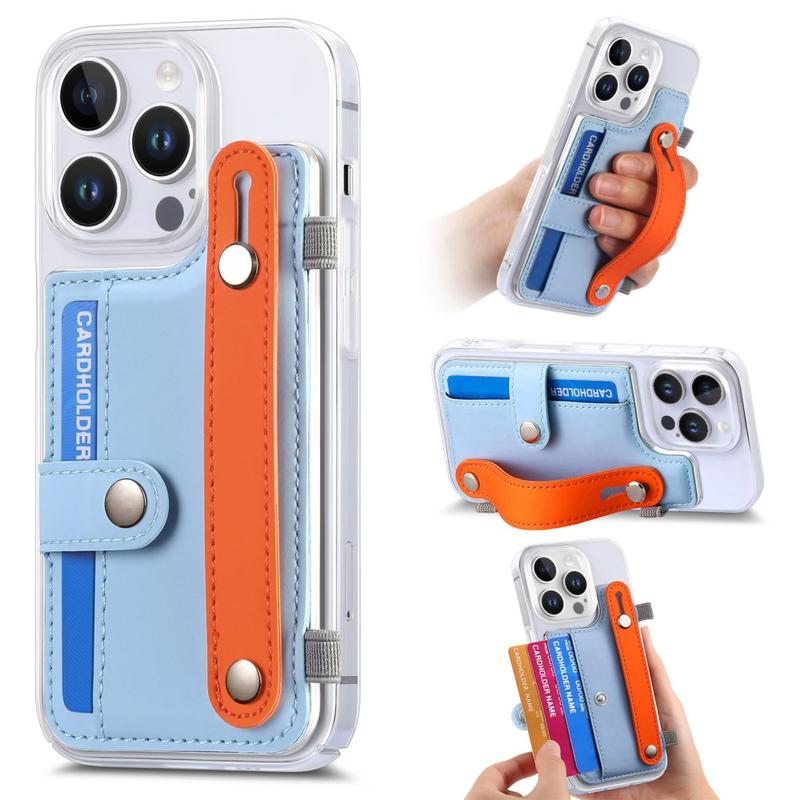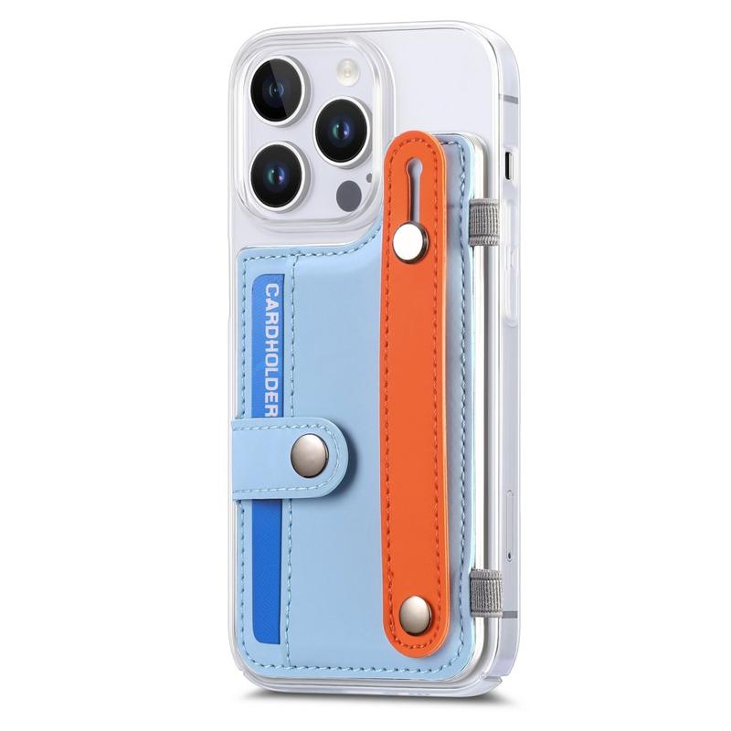 Funda de plástico CY1 para iPhone 16 Pro - Ranura para tarjetas, muñequera, soporte - Azul cielo