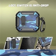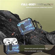 Funda de TPU a prueba de golpes con diseño de camuflaje y mosquetón para AirPods 4, compatible con la carga inalámbrica