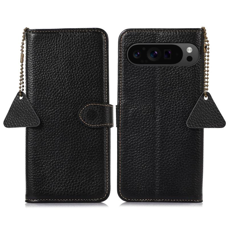 - Funda de cuero tipo billetera con capa de bloqueo RFID para Google Pixel 9 Pro XL