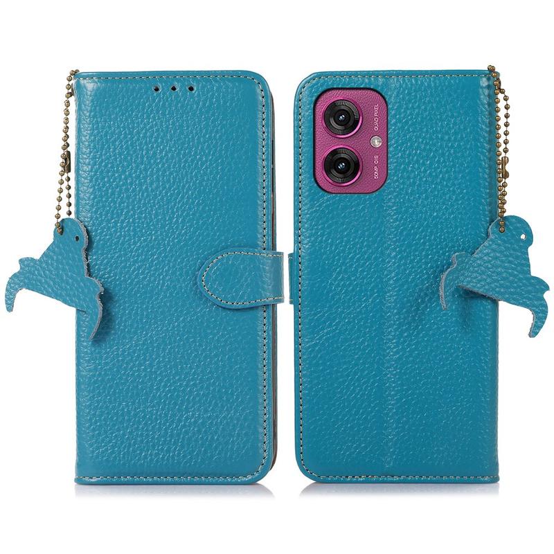 - Funda de cuero tipo billetera con capa de bloqueo RFID para Motorola Moto G55