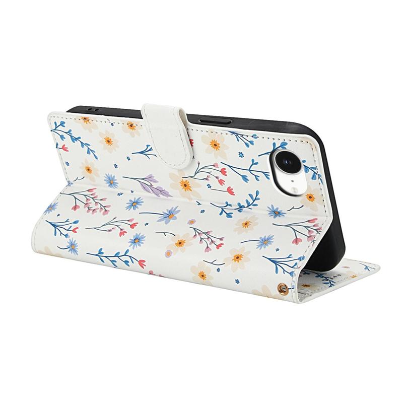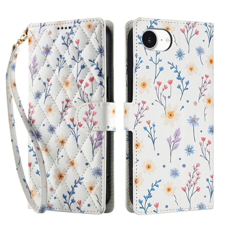 • Funda Rómbica Floral de Cartera para iPhone 16e - con correa y ranuras para tarjetas