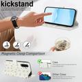Renueva tu Samsung Galaxy A37 con una fina cartera abatible que combina protección segura y funcionalidad para el día a día. El frontal cosido en forma de rombo y el diminuto estampado floral añaden un estilo elegante, mientras que la suave carcasa de TPU amortigua las caídas y la envoltura de poliuretano protege contra los arañazos. Varias ranuras para tarjetas, un bolsillo para el dinero y una correa para la muñeca hacen de esta funda la solución perfecta para llevarla al trabajo, de viaje o por la noche.
