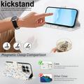 - La solapa magnética mantiene las tarjetas ocultas y la pantalla cubierta sin volumen adicional
