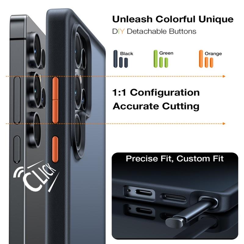 La funda incluye tres juegos de colores de botones intercambiables, que te permiten personalizar el aspecto de tu Samsung Galaxy S26 Ultra. Cambia fácilmente los botones para que combinen con tu estilo, atuendo o estado de ánimo y crea una apariencia única y personalizada.