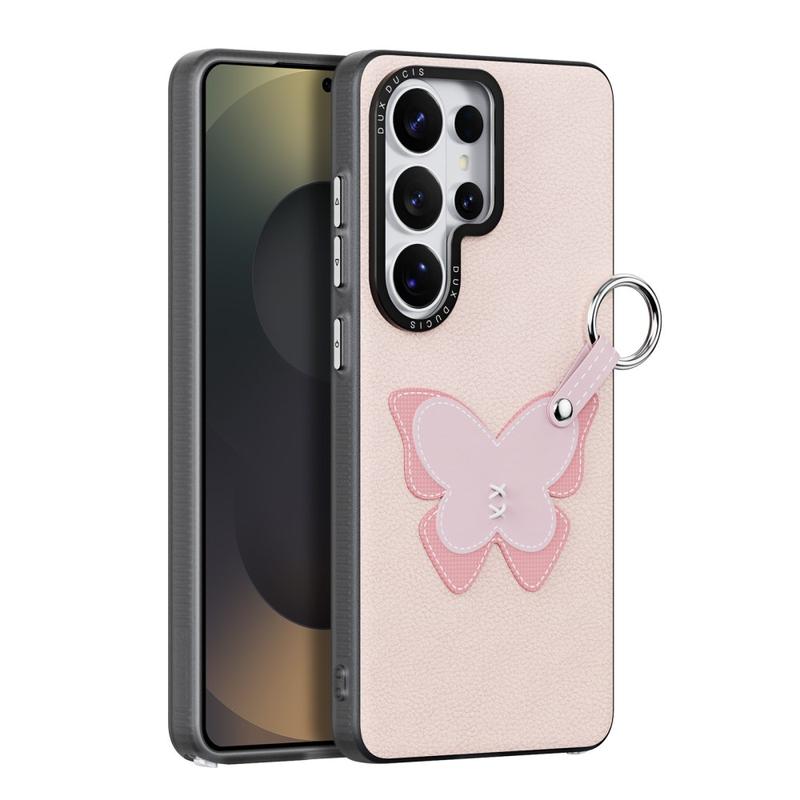 Funda Samsung Galaxy S26 Ultra Dux Ducis Luvy con Anillo para el Dedo/Correa para la Mano - Rosa Claro / Mariposa