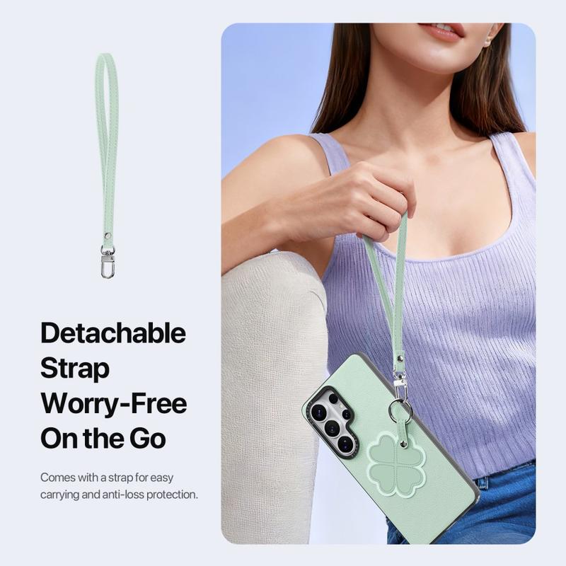Funda Samsung Galaxy S26 Ultra Dux Ducis Luvy con anilla para los dedos/Correa para la mano - Verde / Trébol