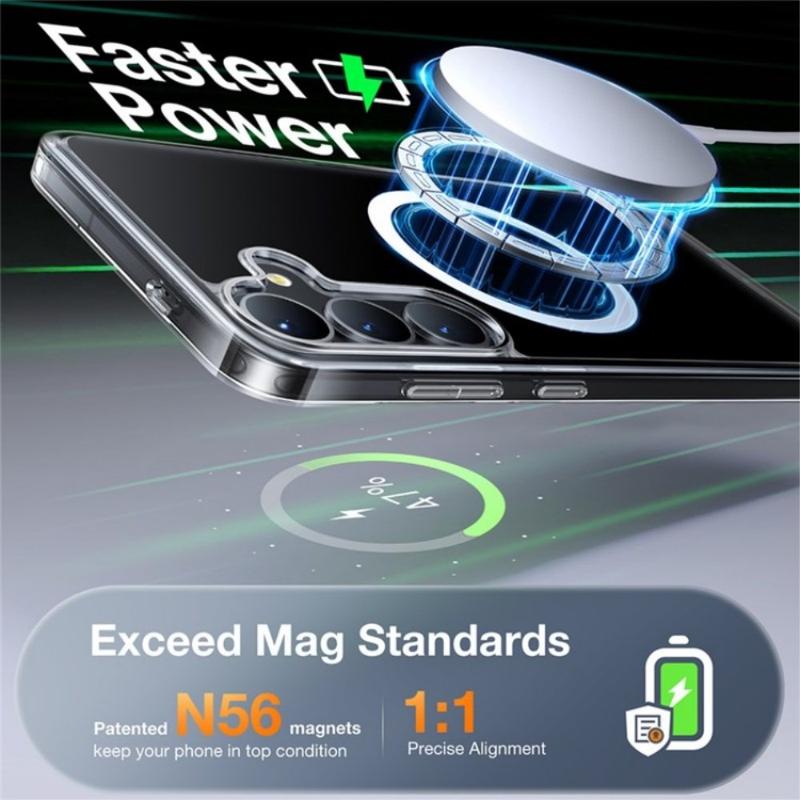 Los imanes de alta resistencia integrados garantizan una conexión segura y estable con cargadores magnéticos, soportes para coche y otros accesorios compatibles. La alineación magnética permite una carga inalámbrica perfecta y una fijación fiable sin necesidad de retirar la funda.