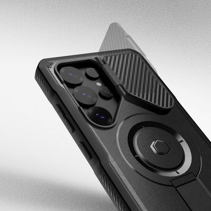 El último elemento que cabe mencionar es el soporte funcional. El soporte, muy fácil de usar, le servirá a la vez como soporte -permitiéndole colocar el teléfono vertical y horizontalmente- y como soporte para los dedos para sostener con seguridad el Samsung Galaxy S25 Ultra en la mano. La funda Kevlar MagSafe+ cuenta con el certificado militar MLT-STD-810H, lo que significa que el producto ha sido sometido a pruebas especializadas de durabilidad y cumple estrictos requisitos operativos.