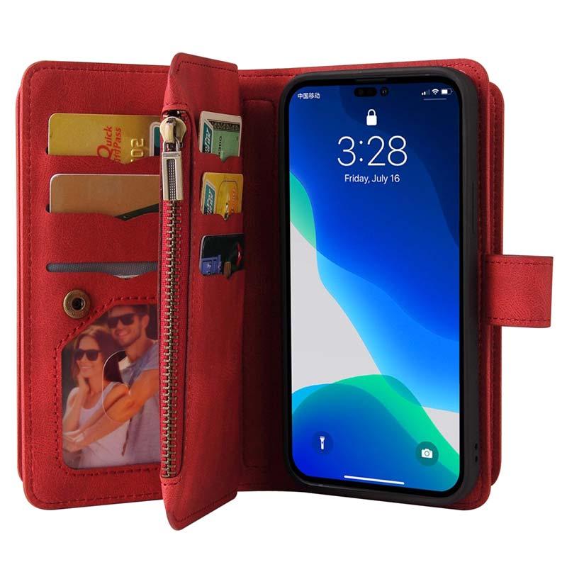 Everything you need for carrying your essentials is in this multipurpose wallet case! You can store your iPhone 14 Pro and other valuables in one place and leave your wallet at home. This premium quality wallet case with perfectly handled details makes your iPhone 14 Pro look luxurious while shielding it from various everyday impacts. Multi-card slot design and zipper pocket are convenient for storing multiple cards, documents, and some cash. In addition, there is a practical strap for easier carrying your iPhone 14 Pro.