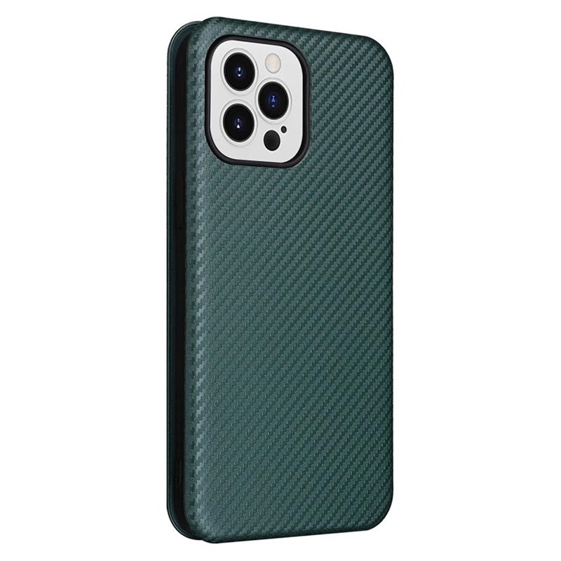 Funda con Tapa para iPhone 14 Pro - Fibra de Carbon - Verde