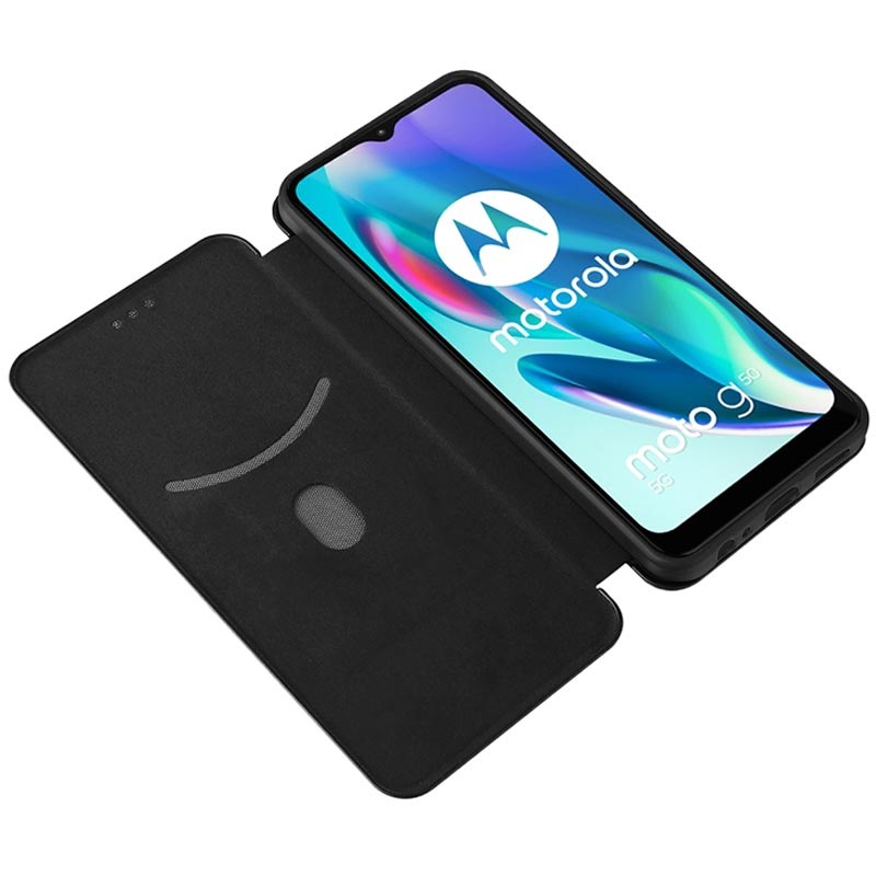 Funda con Tapa para Motorola Moto G50 5G - Fibra de Carbon - Negro