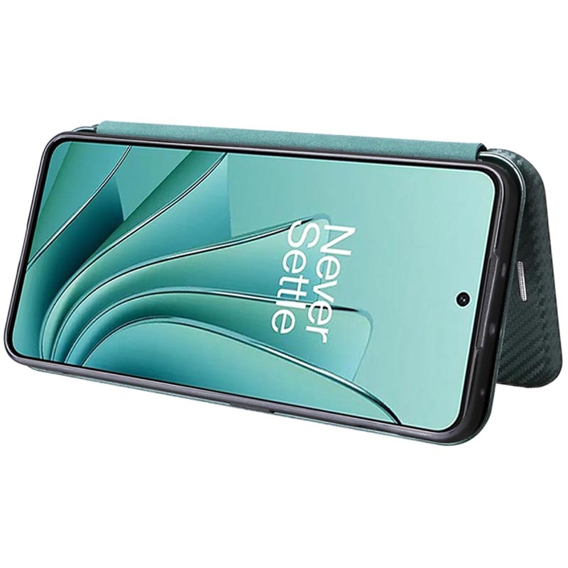 Funda con Tapa para OnePlus Ace 2V/Nord 3 - Fibra de Carbon - Verde