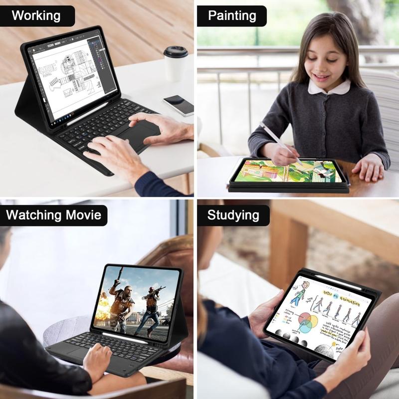 Esta funda del teclado Bluetooth transforma su iPad Pro 12.9 2018/2020/2021/2022 en una computadora portátil portátil en unos segundos. Puede usar el teclado Bluetooth por separado de la funda. Una opción perfecta para elevar la experiencia del usuario mientras mantiene su iPad Pro 12.9 2018/2020/2021/2022 en condición prístina sin ningún daño.